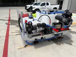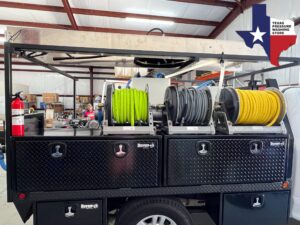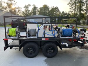 5.5GPM Pressure – 12V Soft Wash – Electric Proportioner – Manual Reels on Reel Rack – Water, Bleach & Soap Tanks
